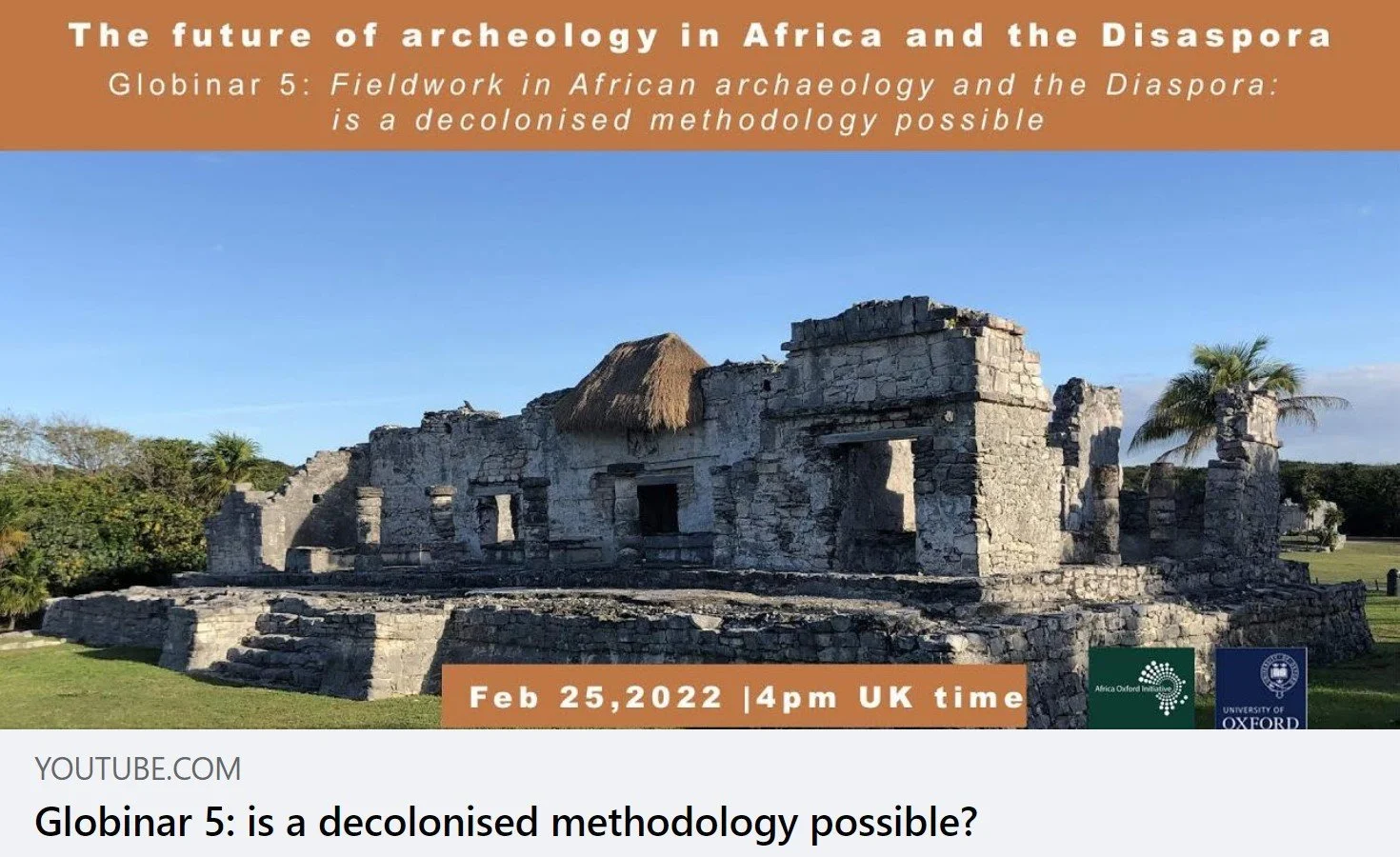 The future of archaeology in Africa and the Diaspora. Africa Oxford Initiative, Globinar 5: Fieldwork in African archaeology and the Diaspora: is a decolonised methodology possible?
