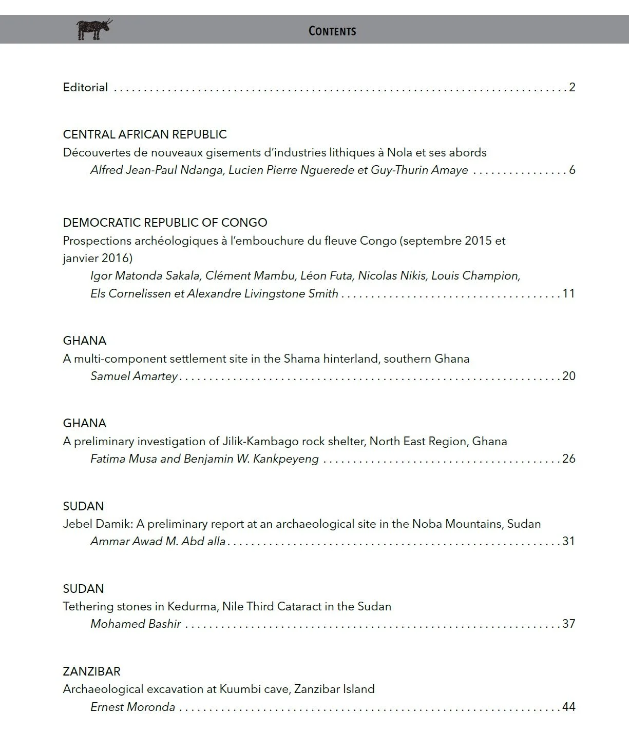 Articles concerning archaeology in Central African Republic, Democratic Republic of the Congo, Ghana, Sudan, & Zanzibar.